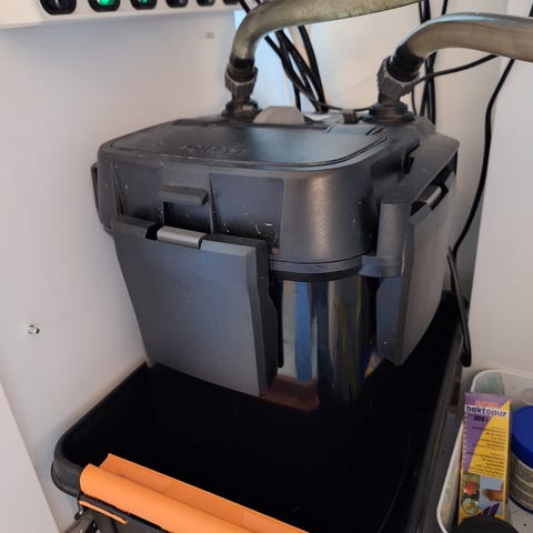 Muutoin toimiva suodatin, mutta vaatii uuden UV valon koska johto taittunut poikki valon juuresta. Voi siis köyttää suodattimena ilman valoa näin myös. Yksi imukuppi puuttuu lisäksi kiinnikkeestä.