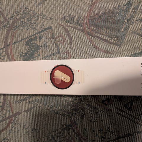 Samsung Galaxy Watch 44 mm älykello oranssilla silikonirannekkeella. Mukana kaksi ylimääräistä ranneketta eri väreissä sekä latauskaapeli. Rannekkeet ovat musta ja sininen, materiaali silikonia. Sopii aktiiviseen käyttöön ja terveysseurantaan.