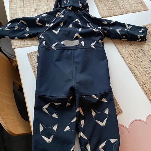 Koko 86. Täysin ehjä. Pepussa tahra joka ei irronnut normipesussa. Lahkeiden ja hihojen suissa kevyttä nukkaa. Muuten hyväkuntoinen.