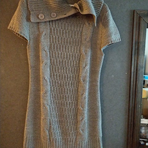 Lämmin, vähän käytetty Vero Modan neulemekko. Pitkä, molemmissa sivuissa lyhyet halkiot. Pituus 103 cm, kai-kai 53 cm. Materiaali akryyli 70 %, nailon 27 %, elastaani 3 %.