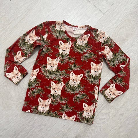 Blaa marjapuuron värinen kettupaita frillahihoilla. Koko 110/116. Hyvä käytetty kunto, ei nukkaantunut.