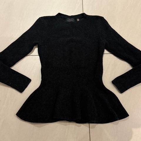 Ted Baker neulepusero kullan värinen juhlapusero, naisten neule, koko L. Vuoren materiaalina 100% puuvilla. Neuleessa on pyöreä pääntie ja lyhyet hihat.
