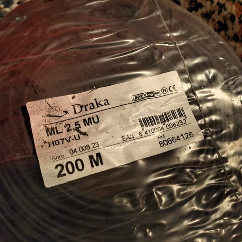 Mustavalkoinen kytkentälanka 2x0,8 - avaamaton 300m kela.