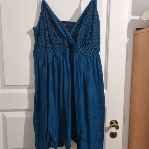 Mekon materiaali on "textured polyester", joten se pysyy varsin hyvin sileänä. Pesu on 40 asteessa. Mittoja: Kainalosta kainaloon on noin 51 cm ja leveys vyötärön kohdalta n. 47 cm.