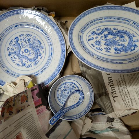 Myynnissä Taiwanissa valmistettu, lähes käyttämätön kiinalaisastiasto. Se on ostettu 1980-luvun alussa Lontoosta. Astiastoon kuuluu: