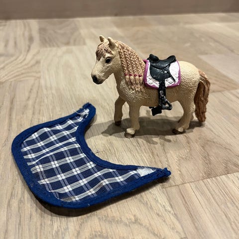 Kolme Schleich satulaa (joista 1 lännensatula) ja yhdet suitset. Yhteensä 20€.