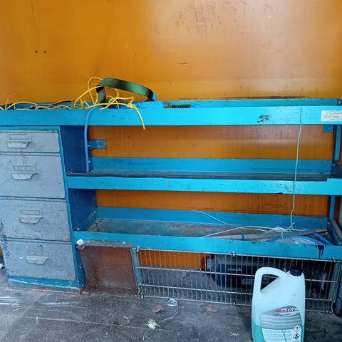 Pakun hyllyt joutilaana. Kuvassa hyllyt Transporterissa.