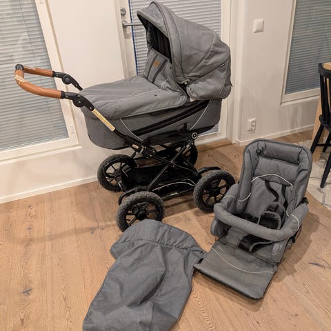 Vaunut on aina säilytetty sisällä, nyt juuri putsattu uudelle tulokkaalle. Uutena ostettu ja eläimettömässä kodissa palvelleet kahdella lapsella, vähäistä käytön jälkeä ja pientä kulumaa.