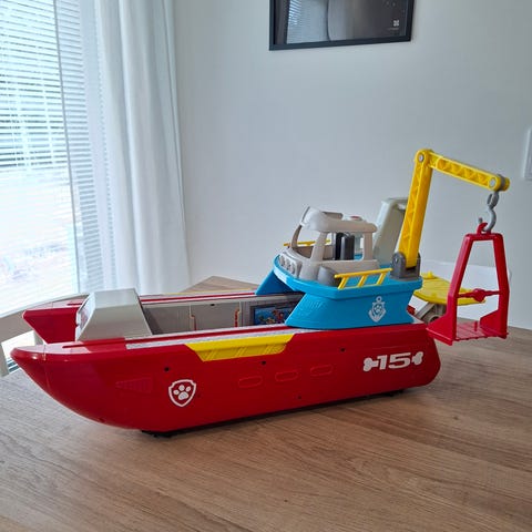 Myydään iso Ryhmä Hau laiva. Laivan pituus on noin 61cm. Äänet ja valot toimii. Äänet kuuluu joko nappia painamalla tai siirtämällä laivan yläosassa olevaa koppia puolelta toiselle. Koppia siirtämällä laivan pohjaan nousee myös isot renkaat. Tai vaihtoehtoisesti renkaat voi painaa takaisin laivan sisään. Mukana tulee ankkuri ja pelastusrengas. Pelastusrenkaan saa ammuttua laivasta nappia painamalla. Laivan sivusta saa avattua luukun, josta Ryhmä Hau ajoneuvoilla pääsee ajamaan laivan sisään.