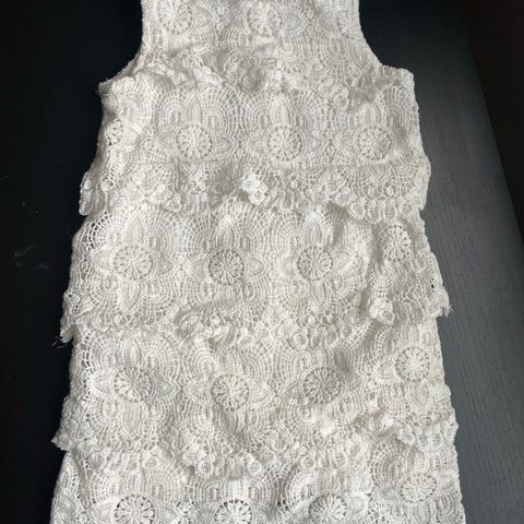 KappAhlin ihana punainen mekko tytöille, koko 92. Helma on koristeltu röyhelöillä. Materiaalina on samettimainen kangas, joka antaa pehmeän ja hieman kiiltävän pinnan. Saatu uutena, kahden lapsen kahtena jouluna käyttämä. Ainoa "puute", että takaa irronnut nappi on ommeltu itse (eri nappi kuin alkuperäinen).