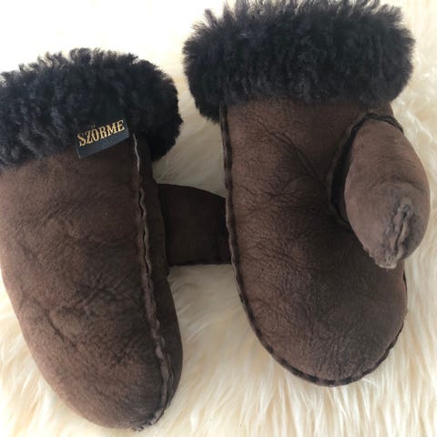 Alwero-merkkiset, 100% lampaannahkaa ja -villaa olevat lapaset talveen pienokaiselle. Eivät tulleetkaan meille käyttöön.