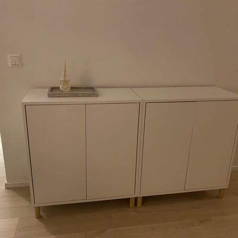 Myydään Ikean Eket hyllykkö. Näihin tulee mukana seinäkiinnikkeet. Ovat olleet reilun vuoden käytössä. Kunto on hyvä, mutta jonkin verran käytön jälkeä on näkyvissä (ks. kuvat). Kuljetus lähialueelle onnistuu pientä korvausta vastaan.
