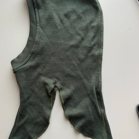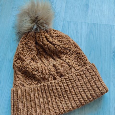 Merinovillainen myssy koossa 50/51, 2-4 years. Väri muistaakseni kaneli. Nauhoissa kaksi korjattua reikää. Muutoin ei huomautettavaa.