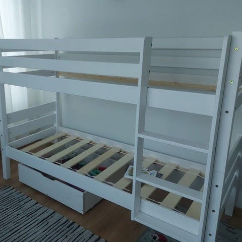 Myynnissä 2 vuotta sitten uutena ostettu Nukkumatti kerrossänky 80x200cm + sängynaluslaatikko + 2x 80x200cm patjat.