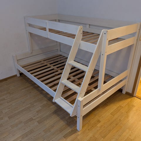 Kerrossänky on valmistettu massiivimännystä. Sängyt voi myös pitää kahtena erillissänkynä. Kerrossänky on mahdollista kasata myös peilikuvana eli tikkaat joko vasemmalle tai oikealle puolelle. Jos kiinnostaa niin lisää kuvia yksityisviestillä.