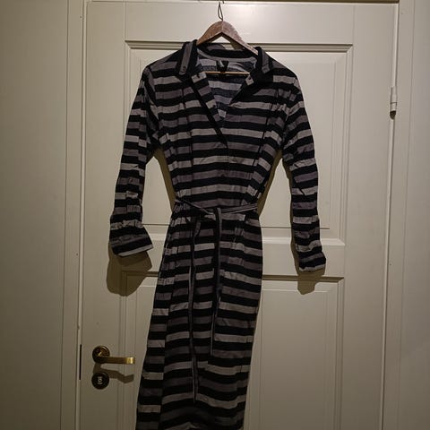 Vuokon mekko, kunto muuten moitteeton mutta pieni haalea pinkki tahra helmassa, mikä näkyy 8. kuvassa. Taskut, vyö mukana