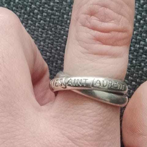 Aitous: Korvakorut on pakattu alkuperäiseen Yves Saint Laurentin merkkiseen koteloon, jossa lukee "collection argent" (tarkoittaen ranskaksi hopeakokoelmaa).