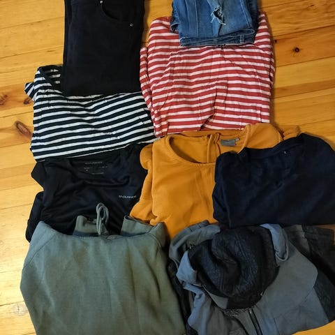 Vaatepaketti L 2x farkut, 2x huppari, 2x pitkähihainen ja 3xT-paita