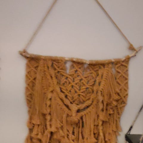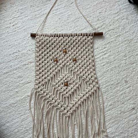 Myyn kuvien minimakrameen, seinäkoristeen.