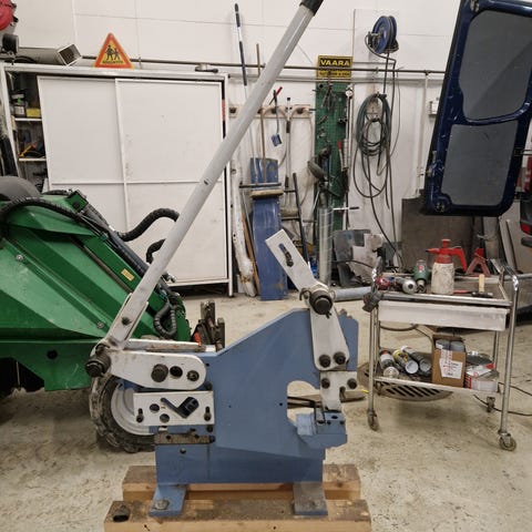 Leikkuri, särmäri ja mankeli samassa koneessa.
