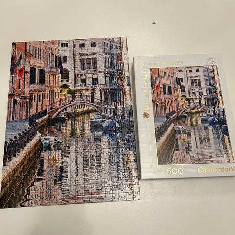 Neljä kivaa palapeliä, palat tallella pusseissa, kiinnostavat kuva-aiheet.