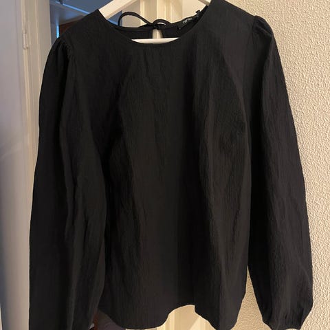 Täyspitkät hihat, jotka poimuttuvat hihansuiden kuminauhakäänteeseen. Materiaali kudottua, seersucker pintaista puuvillaa, jossa hieman elastaania. Kunto kuin uusi, muutaman kerran pidetty. Kai-kai 52cm, olka-helma 62cm.
