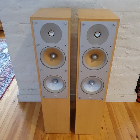 Bowers & Wilkins Matrix 3 on lattiakaiutinpari, jossa on puinen kotelo ja mustat kaiutinelementit. Kaiuttimet on valmistettu Englannissa, ja niiden takapaneelissa on liitäntäportit kaiutinkaapeleille. Mukana on myös alkuperäiset tekniset tiedot ja ohjeet. Yhteen kaiutinelementtiin on tullut vauriota vaatehuoneen varastoinnin aikana. Näköjään netissä hintahaarukka 500-1500 euroa.