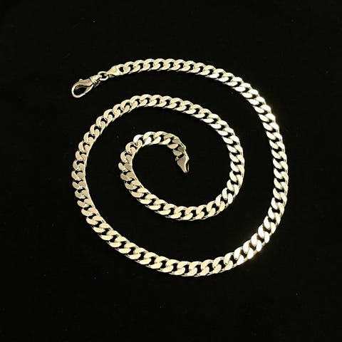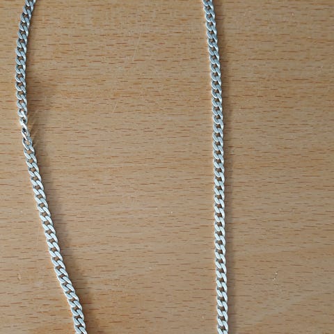 Hopeaa (925), pituus n. 55 cm, paino n. 34,9 g. Ketjun leveys n. 5 mm.