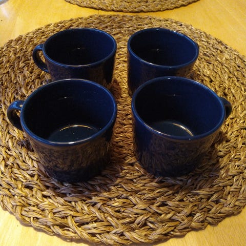 Kaikki kupit ja lautaset ovat erinomaisessa kunnossa, kunto kuin uusi. Väri tumma sininen.
