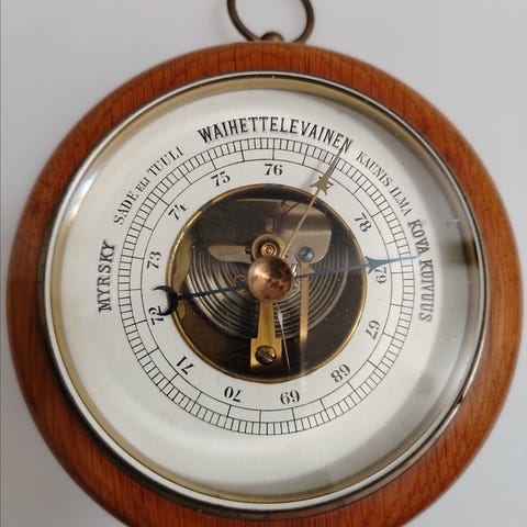 Kaunis 4-osainen puinen ilmapuntari kellolla.