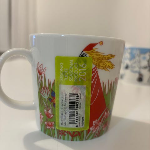 Muki on erinomaisessa kunnossa. Ei tarraa.