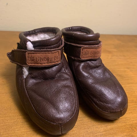 Uudet Lindberg hirvennahkatossut koossa 17/18 sekä merinovillaiset Manymonths tumput vauvalle. Temppujen pinnassa kosmettinen virhe