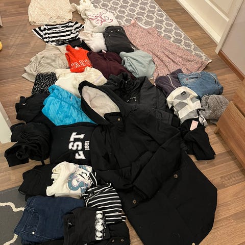Muovikassillinen xs/s koon vaatteita vaatepaketti, sekalainen kunto mutta yhä pidettäviä. Valkoisissa farkuissa tahra lahkeessa alhaalla voi lähteä pois. Nahkalegginsit käyttämättömät kuten yksi toppikin. 2 olkalaukkua. Hinta kaikille yhteensä.