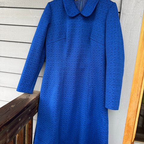 Kotimainen Soilituotteen crimplene cocktail / juhlamekko Kangas kimaltelevaa Suomen sinistä ja sopii erinomaisesti Itsenäisyyspäivä juhlintaan.