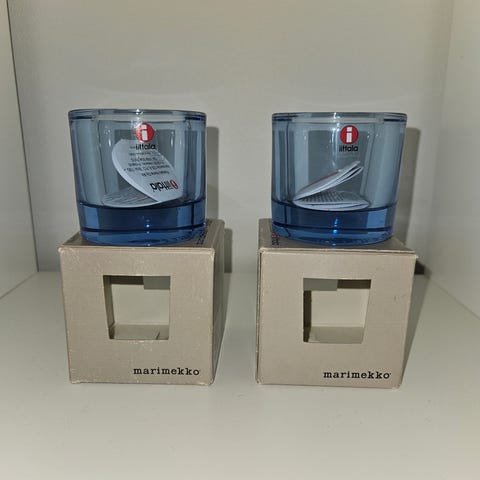 Iittala Kivi Kynttilälyhty, suunnittelija Heikki Orvola 1988. Koko 60 mm, väri ultramariininsininen. Valmistettu Suomessa. Käytetään kynttilälyhtynä.