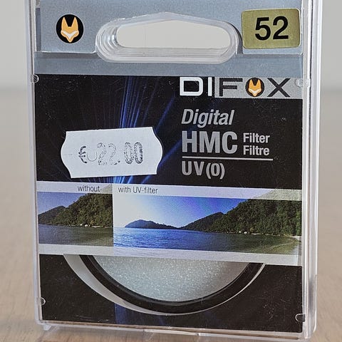 Myynti: Kaiser UV - 52mm - japanilainen UV-suodatin, joka vähentää ilmassa esiintyvää utua ja suojaa objektiivin optiikkaa. Kompakti ja tehokas. Mukana alkuperäinen kotelo. Erinomainen kunto.
