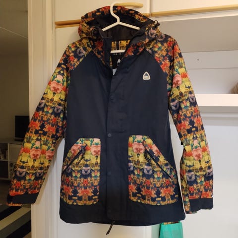 Farkun sininen naisten laskettelutakki koossa xs. Ehjä ja siisti, hihansuissa kulumaa. Hupun tekokarva napeilla irtotettavissa.
