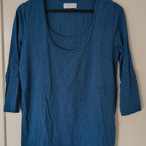 Sini-keltaraidallinen trikoopaita. Koko M. Hyväkuntoinen. Kaikai-mitta n. 41cm, pituus n. 65cm.