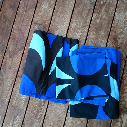 Myydään kuvan kaksi pussilakanaa ja kaksi tyynynliinaa. Nämä ovat hyvässä kunnossa, ei löytynyt moitittavaa.