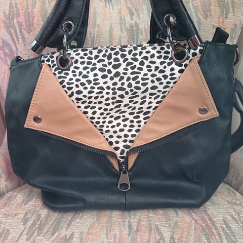 Kantokahvat ja irrotettava olkahihna, sisällä avainlenksu, pieni verkkotasku, vetoketjullinen tasku, tablettitasku, avotasku. Edessä läppätasku vetoketjulla, jossa avotasku, kynälenkit. Vetoketju.