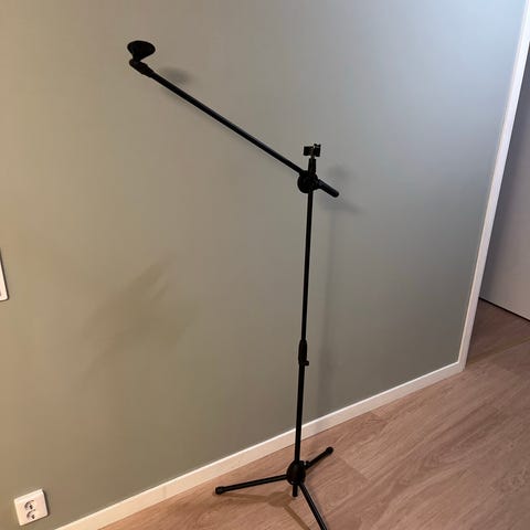Tukeva mikrofoniteline, jossa kaapelointi putken sisällä.