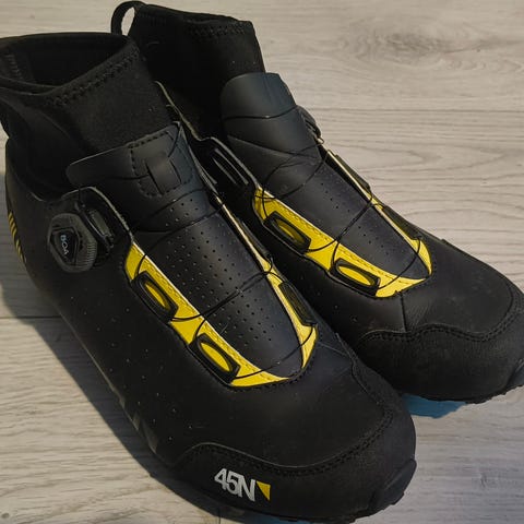 Tästä talvipyöräilykenkä sinulle, jolle mikään ei tunnu riittävän lämpimältä. Irrotettava villainen sisäkenkä ja Boa nauhoitus. Muutaman lenkki näillä ajettu kovimmilla pakkasilla mutta jäänyt hyvin vähäiselle käytölle kun itselle saman merkin Wölwhammer ollut toistaiseksi riittävän lämmin. Kokomitoitus hieman nafti joten pitäis hyvin sopia n. 40-42 koon jalkaan myös hieman paksumman sukan kans. Shimano SDP klossit on kenkiin kiinnitettynä jotka saa halutessaan mukaan.