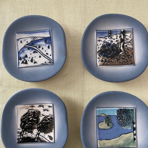 Myydään Heljä Liukko-Sundström/Arabia "Ruiskukat" seinätaulu/seinälaatta, 23,5cm x 11cm.