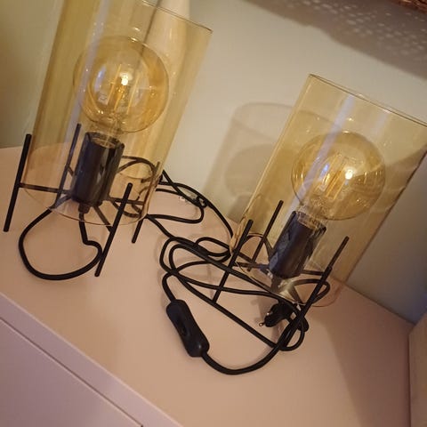 Kaksi musta kuvioista ja kaksi valkokuvioista valaisinta. Korkeus n 10cm. Ilman polttimoita. Hinta yhteensä 10€
