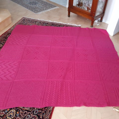 Kuvioitu paksu peitto on erittäin lämmin ja terveellinen. Se on valmistettu kokonaan käsin.