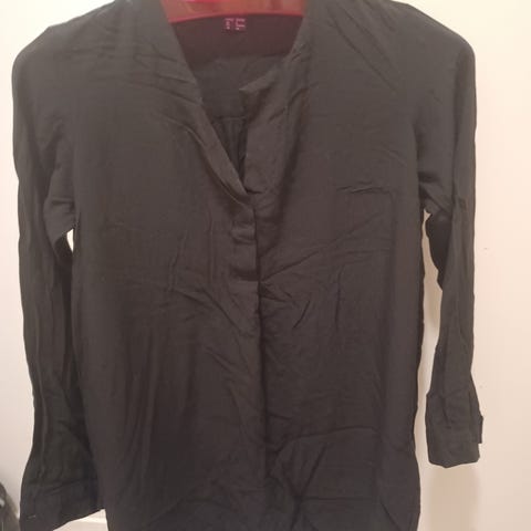 Esmara hihaton toppi mustassa värissä, koko 44. Toppi on koristeltu kiiltävillä paljeteilla, jotka antavat sille juhlavan ilmeen. Välkehtii musa-vihree-sininen_ hopea valosta riippuen .