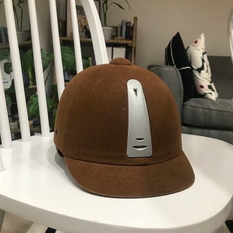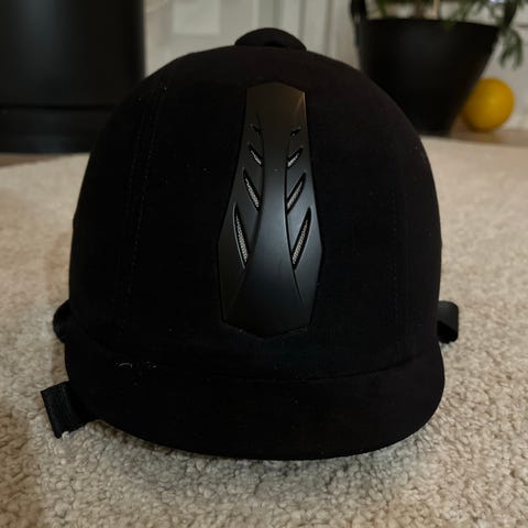 Käytettynä ostettu ja muuraman kerran itse käytetty. Ei tietoa aiemmasta historiasta, mutta kangas päällä virheetön. Sisällä hieman nukkaa. Hyvät pehmusteet ja hengitysaukot.