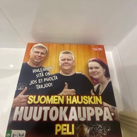 Hauska huutokauppapeli, sis pelilauta+ pakettiautonappula, 250 korttia, pelirahaa, noppa yms.