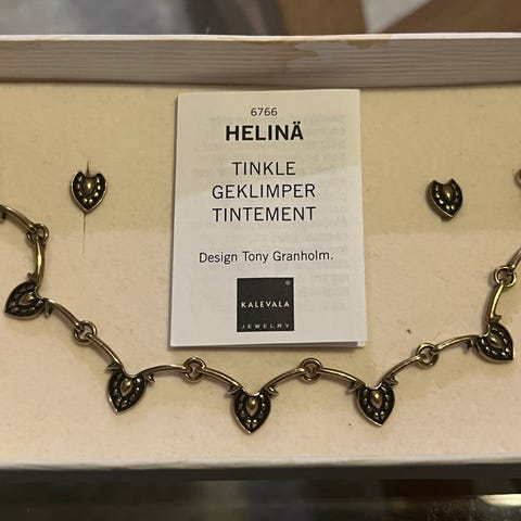 Kalevala pronssinen Hirvenpää korusetti sisältää kaulakorun, rannekorun, korvakorut ja sormuksen. Korut eivät ole olleet käytössä, säilytetty omissa rasioissaan.