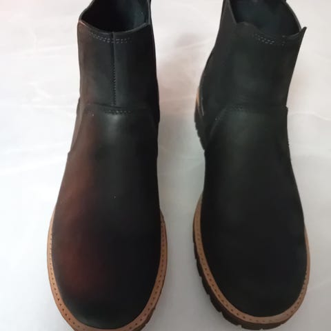 Todella hyväkuntoiset Eccon nahkanikkurit. Osa kengästä on pintanahkaa ja kenkien takaosan nahassa on himmeämpi pinta. Väri on harmahtavan vihreä. Kenkien koko on 40. Pohjista näkee ettei kenkiä ole paljon käytetty.